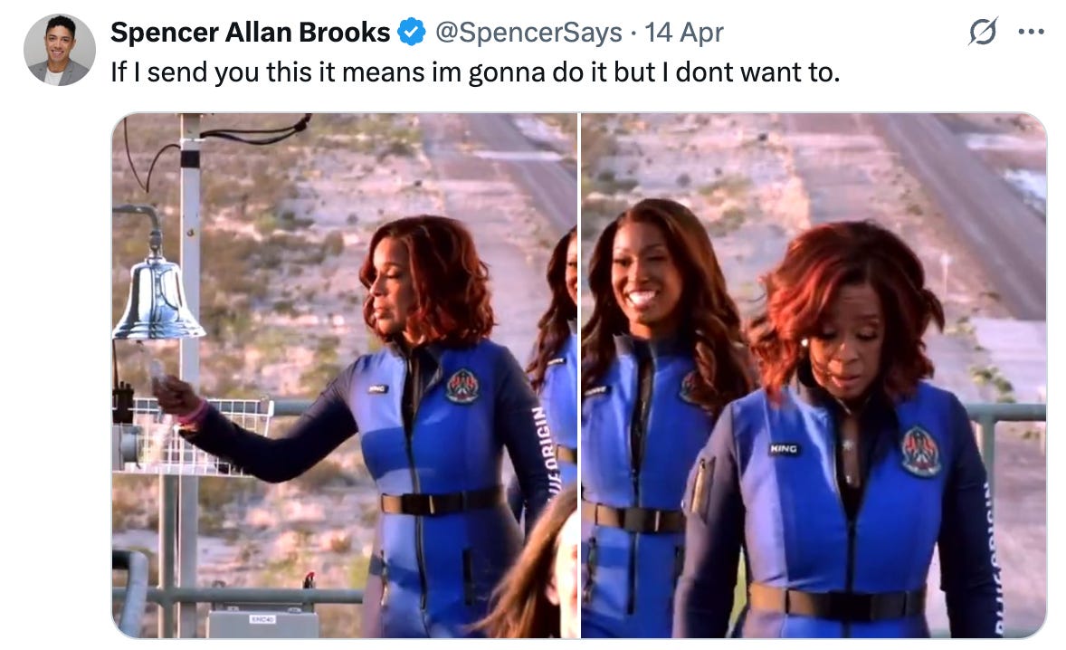 Katy Perry went to space. And came back, in 10 minutes, from launch to landing. The Blue Origin all-female space flight was a modern-day “let them eat cake”. The internet is rife with criticisms towards the flight and what it claimed to represent. Millions of dollars were spent only to double down on misogynistic stereotypes where the “astronauts” wore skin-tight suits, quipped about “putting the ass in astronaut” and Katy Perry stared at the camera inside instead of looking out of the windows during what can only be called a joyride. But I guess it’s all worth it if we got a few dozen memes of Gayle King looking scared and reluctantly going on board. Pitchfork hit the nail on the head.