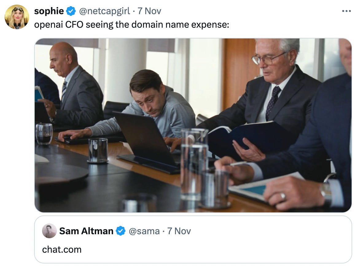 OpenAI has bought the domain name chat.com for $15M+ from the co-founder of HubSpot.