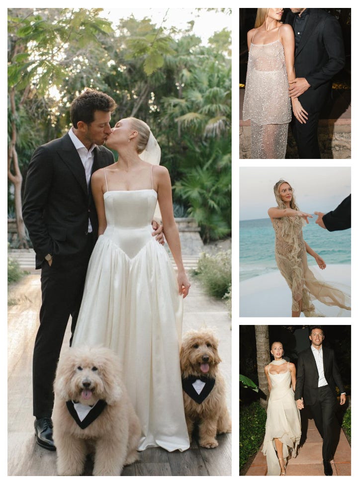Crossing over from the American Riviera to Riviera Maya in Mexico, host of one of the most popular podcasts, ‘Call Her Daddy’, Alex Cooper got married to co-founder and co-CEO of their company Trending Media, Matthew Kaplan. Her outfits and the laid-back Mexico beach wedding vibes looked like a dream!!