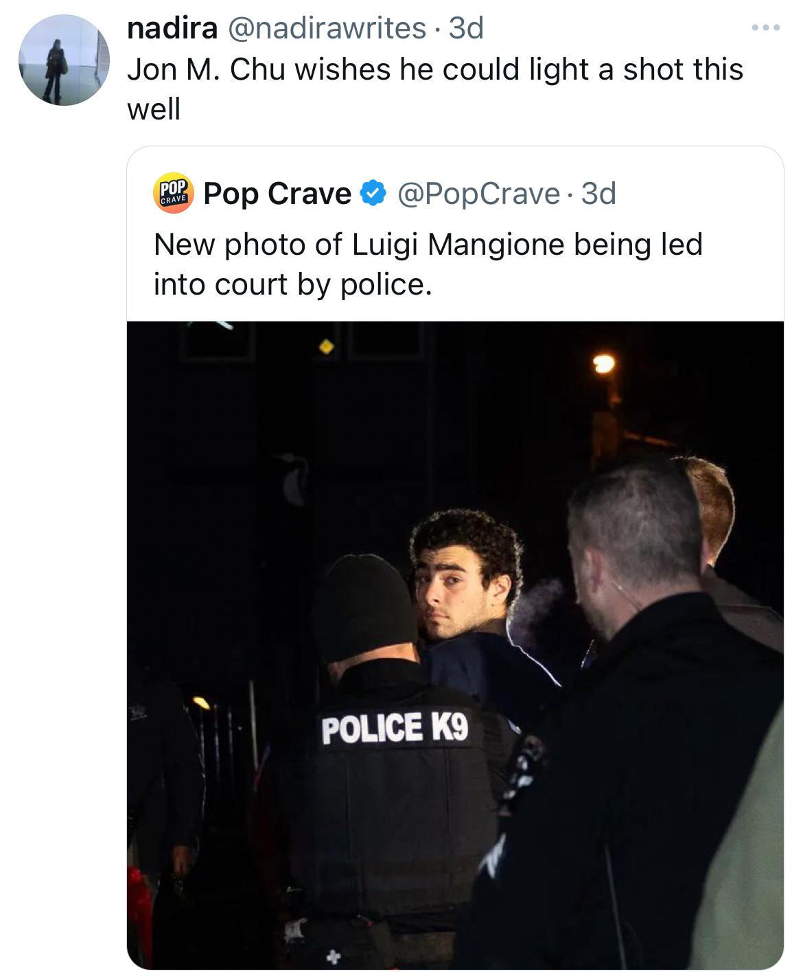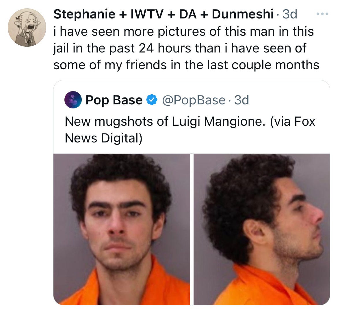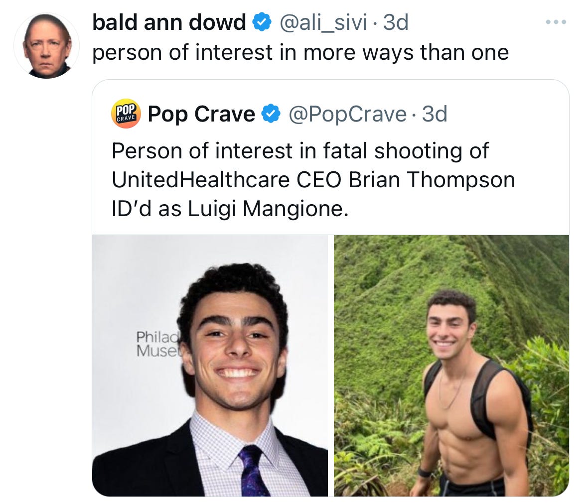 First things first, a lookalike contest was held for the masked shooter behind the assassination of a health insurance company’s CEO in New York. But after a tip from a McDonald’s worker (what happened to class solidarity?), the police finally caught the culprit. And if the Internet was thirsting over CCTV images last week, then finding out the assassin’s identity only further opened the floodgates. The 26 year old Italian-American UPenn grad is Luigi Mangione and the Gen Z attacker’s endless digital footprint has raptured everyone.