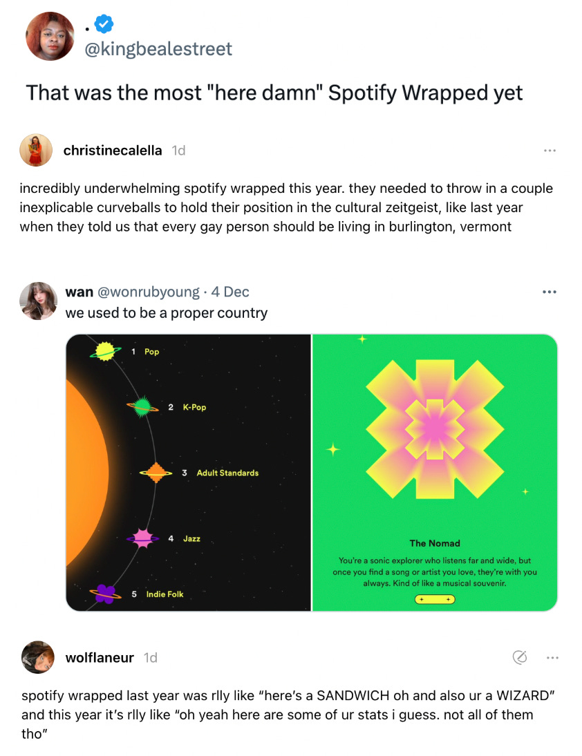 The 2024 Spotify Wrapped feature was finally released on 4th December, but it was a major letdown as there were no statistics for albums or genres, nor any fun segments decoding the listener’s personality, which they’ve come to be known for over the years. It’s being speculated that this has been a result of the massive layoffs Spotify did earlier in the year, and their reliance on AI for this year’s Wrapped.