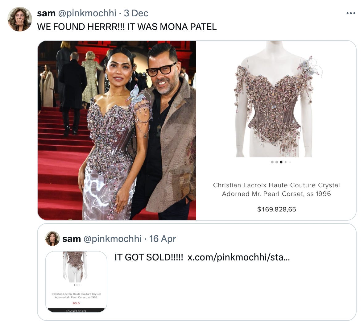 After making waves at this year’s Met Gala, Mona Patel showed up to The Fashion Awards wearing the Christian Lacroix Haute Couture crystal corset!