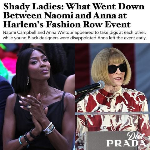 Would it be the start of fall without some shade? Anna Wintour took a jab at Naomi Campbell at the Harlem’s Fashion Row’s Style Awards, where she was supposed to present her with a special honour, “I am a very punctual person, and I have the honour of presenting tonight to someone who is often late.” She proceeded to delegate the responsibility to the editor of Harper’s Baazar and left. Naomi clapped back once she arrived, “It wasn’t my choice to have the other woman, I’d much rather have this”. And where did Anna have to dash off to so soon? To watch a match at the US Open.