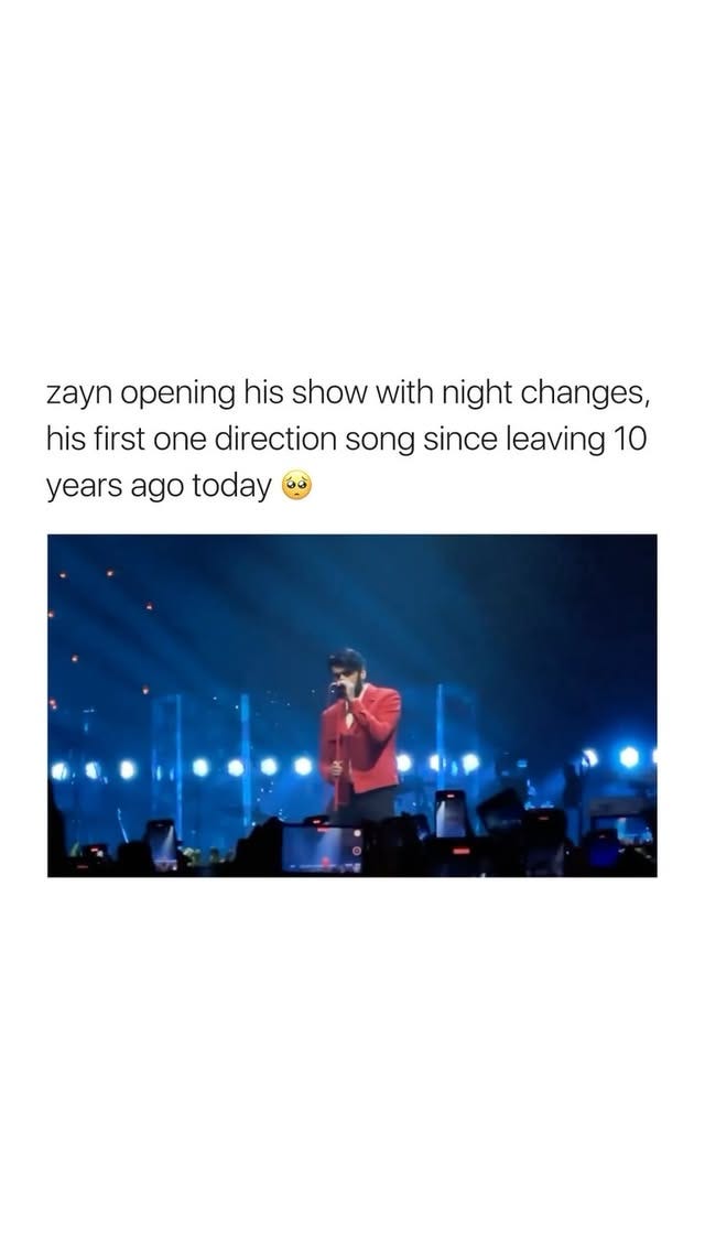 On the 10-year anniversary of leaving One Direction, singer Zayn sang the band’s hit, Night Changes at his concert in Mexico City. “It's the first time I've sung that song in 10 years. Thank you, that was f***ing amazing. I almost cried,” he said.