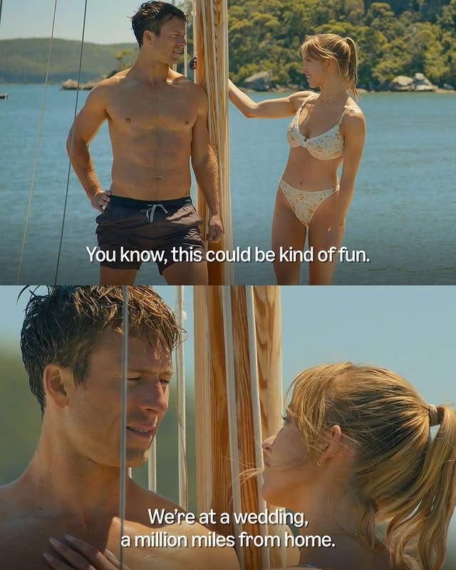 Sydney Sweeney has called off her engagement with long-time partner producer Jonathan Davino, and soon after this news broke, she was spotted attending her Anyone But You co-star, Glen Powell’s sister’s wedding in Dallas, Texas. The two played into their chemistry while promoting the movie, raising suspicions of an affair but seems like life IS imitating art this time.