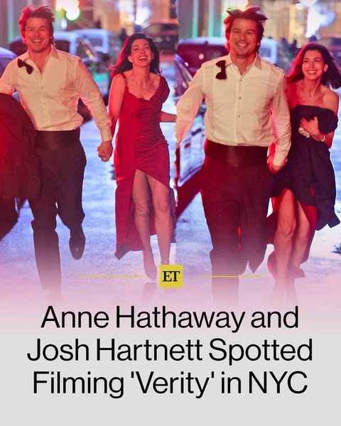 Anne Hathaway and Josh Hartnett were spotted filming for the adaptation of Colleen Hoover’s book, Verity, in New York.