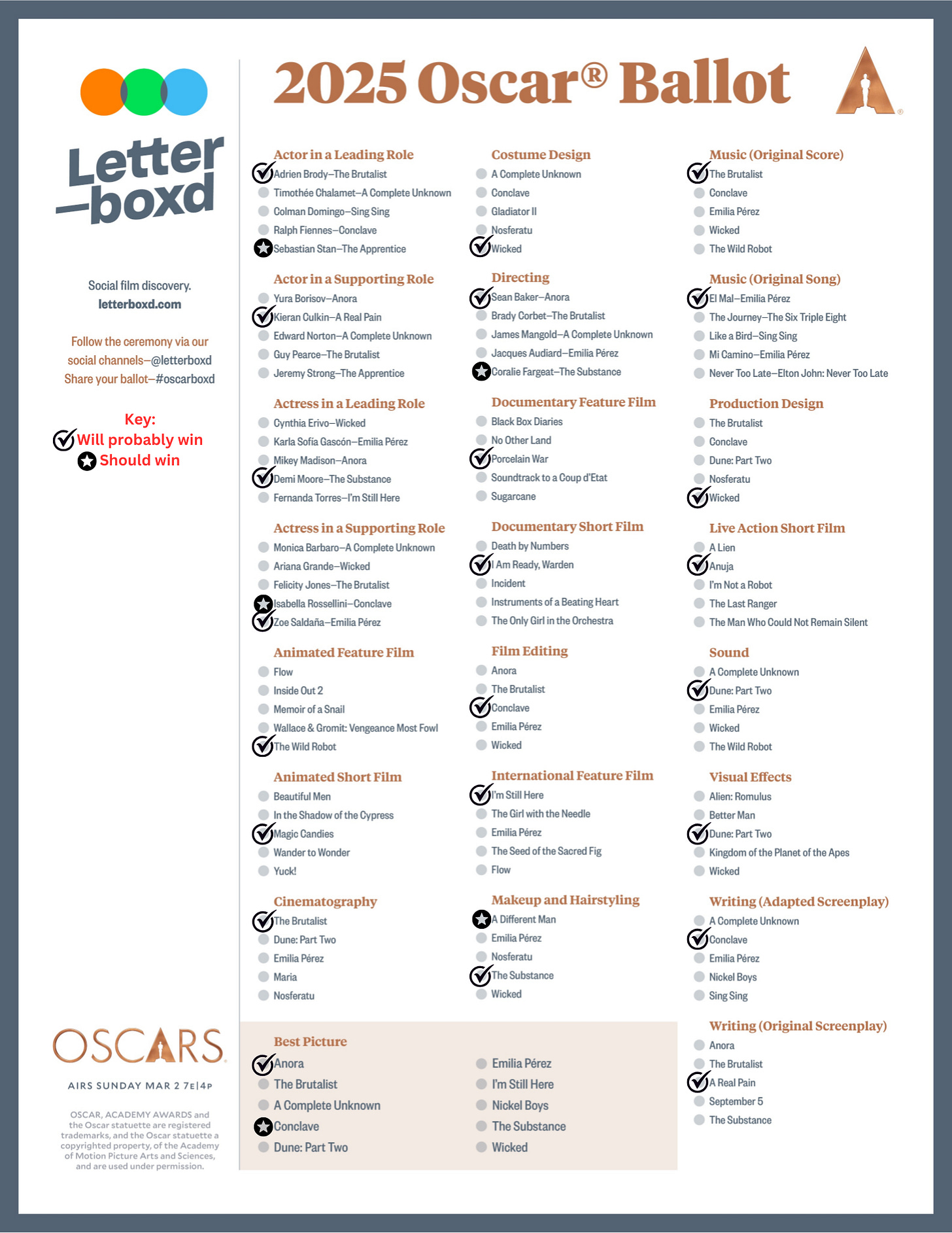 The Academy Awards take place this coming Sunday. In revealing their secret picks, anonymous Academy voters have also dropped bombs like voting for Adrien Brody for Best Actor because they thought Ralph Fiennes has already won an Oscar before (he hasn’t) (in fact out of all Best Actor nominees, Brody is the only previous Oscar winner), not voting for Cynthia Erivo as she’s “too old” for Wicked, and not watching Dune 2 because who has the time to watch all these movies as a member of the Academy, right? Ugh!!